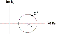 that the integral does not “blow up” because k0 ≠ ωk over the contour integral. We are using a mathematical trick that